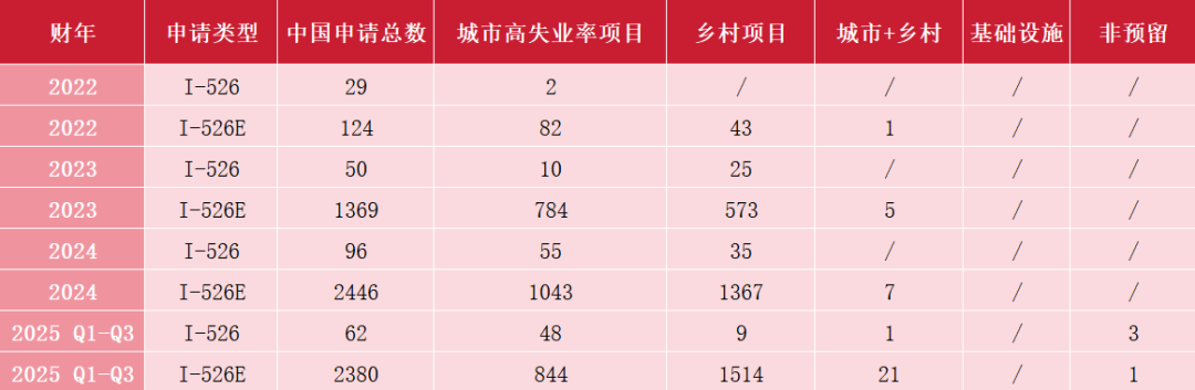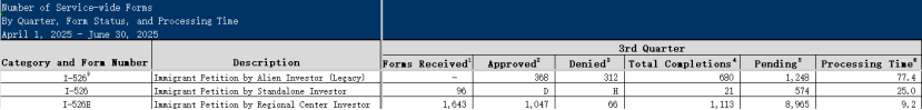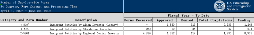 截至2025财年第三季度,已有8965 份I-526E申请处于待批状态 。