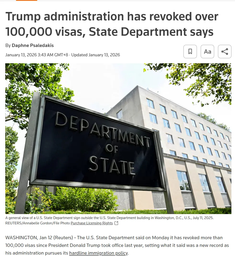 此次签证大规模撤销,并非孤立事件,而是特朗普政府移民政策调整的一部分。