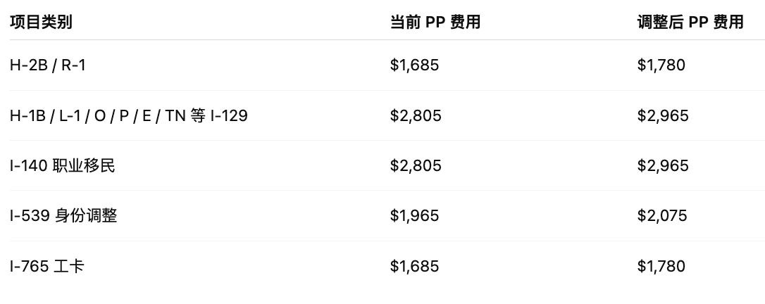 此次调整涉及多个高频身份与移民类别,包括 H-1B、OPT、EB-1、EB-2、EB-3 等,对正在规划或即将递交申请的家庭与雇主均具有重要影响。